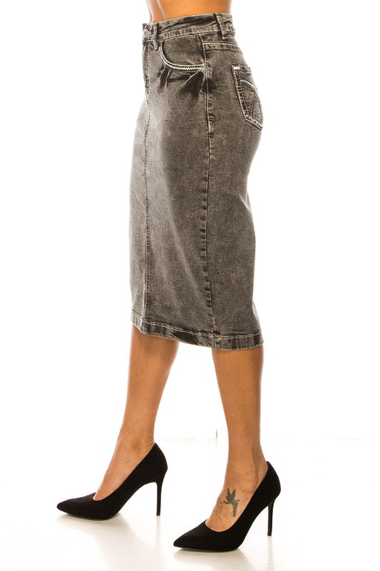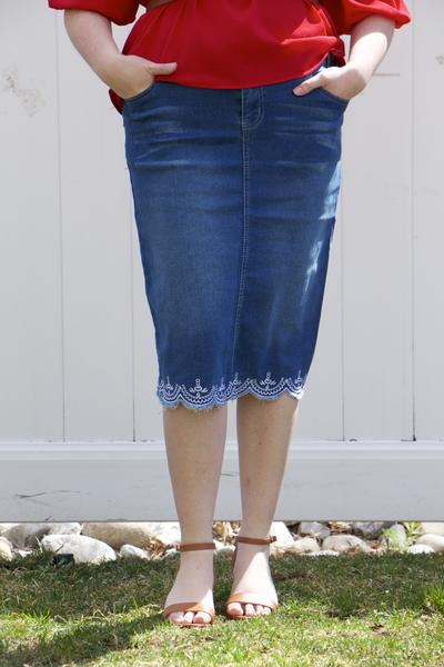 I love the fit and the color of this denim skirt. I think the price of the skirt is good considering the great quality. Very pleased with my purchase!