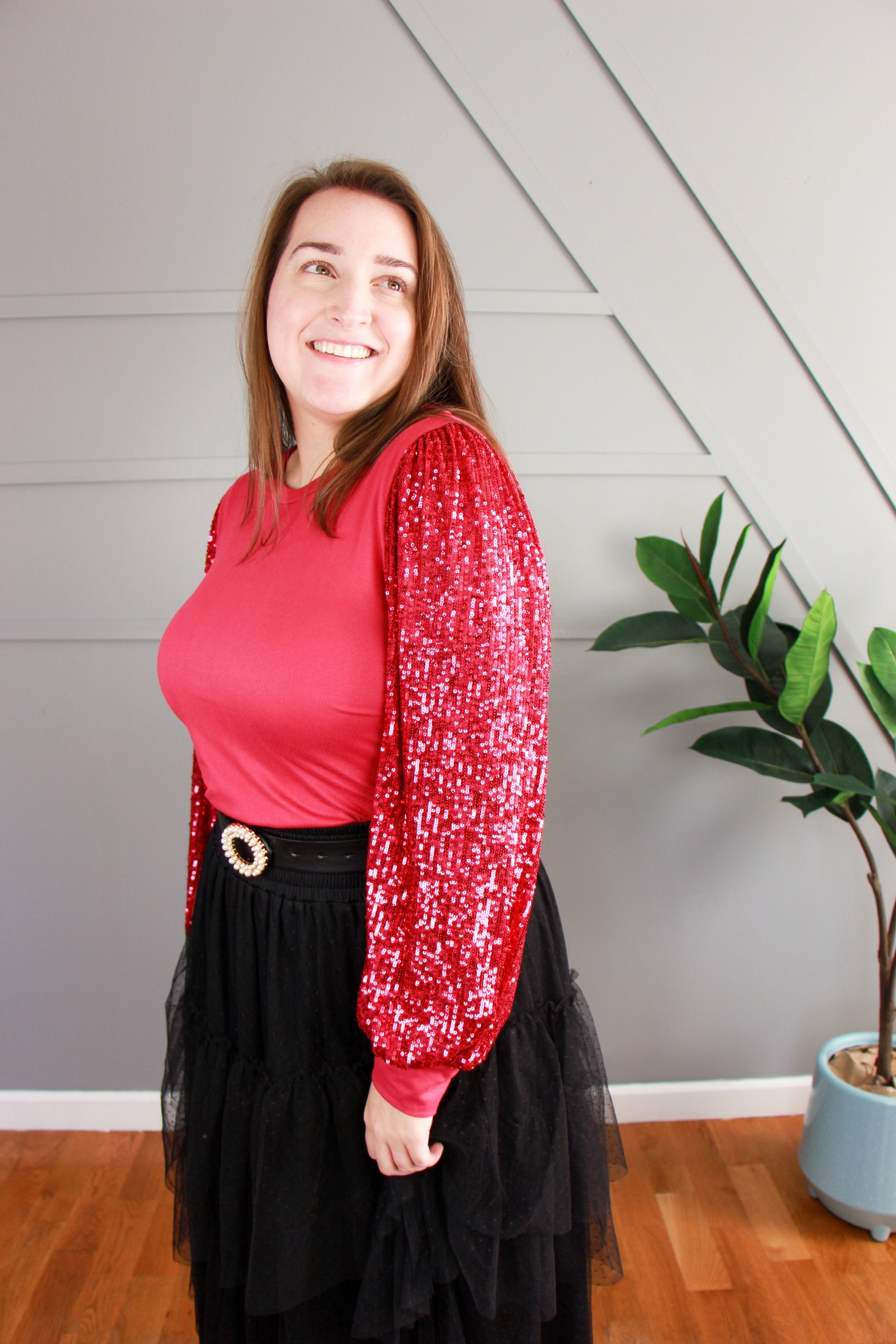 bought this dress for a Christmas party, and it was beautiful! I’m 5’2 and the dress was a little longer, but I wore heels at it was perfecta