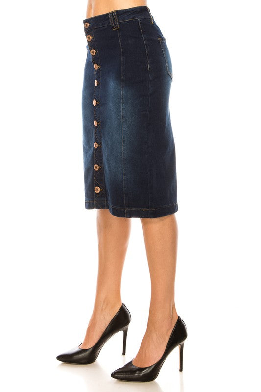 Our Belinda dark skirt features the gorgeous button styles that we love with back pockets