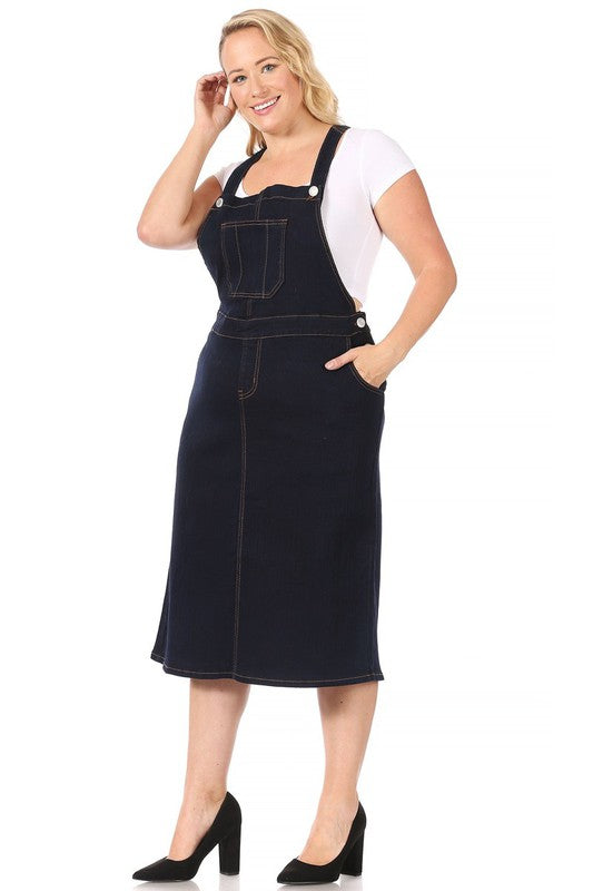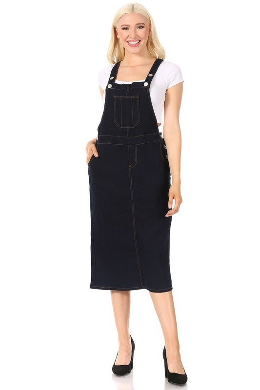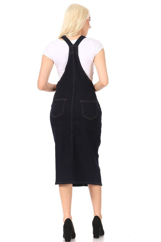We have brought back a customer favorite, our lovely denim overalls. Featuring side pockets, no slit and a dark denim wash.