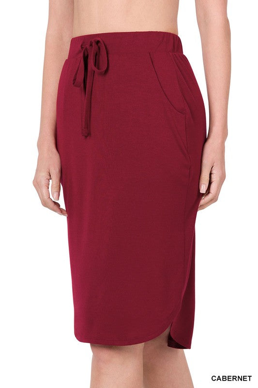 Our Emma jogger drawstring skirt is comfy, casual, chic and best of all, it has pockets!